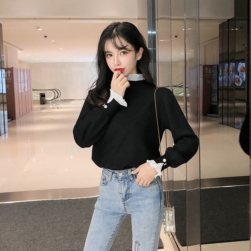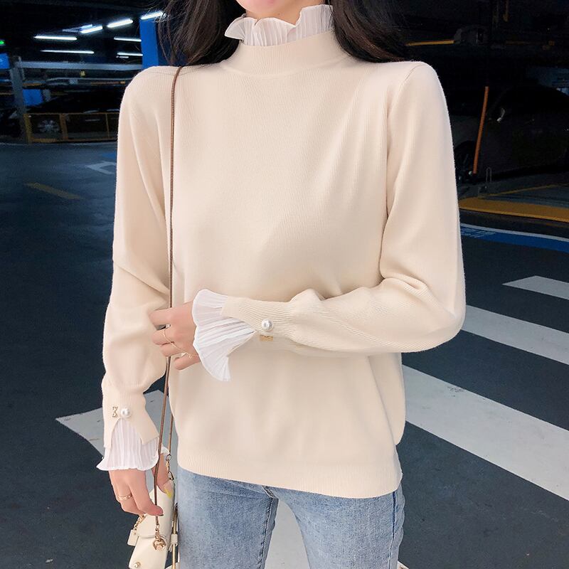 トップス ニット セーター 袖あり 長袖 ハイネック フリルネック レイヤード フリル パール かわいい 大人可愛い きれいめ シンプル カジュアル 上品 清楚 フェミニン シック おしゃれ お洒落 綺麗 お嬢様 おとな こなれ感 ラフ ラブリー キュート ガーリー 個性的 レトロ 抜け感 無地 OL 通勤 学生 通学 デート お出かけ 女子会 休日 旅行 秋 冬 10代 20代 30代 40代 ママ 女性用 韓国 韓国系 着回し 普段使い 重ね着 体型カバー ファッション コーデ スタイル モテ