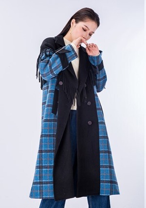 #長袖 #シンプル #レディース #秋冬コート韓国チェック柄ミドル丈タッセルショールルーズ女性 #アウター