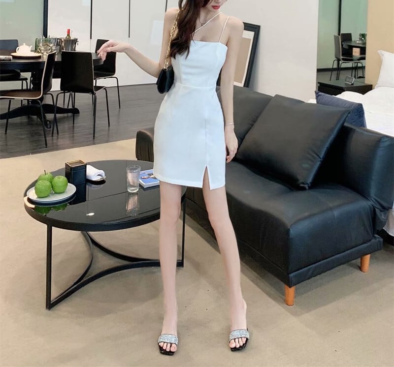 ドレス ワンピース レディース ショート スカート サスペンダー スリット スリムフィット ミニワンピース セクシードレス かわいい 大人可愛い きれいめ シンプル 主役級 存在感 フォーマル とろみ感 抜け感 セクシー パーティー イベント リゾート デート お出かけ インスタ映え 女子会 お泊まり 休日 着回し 普段使い 重ね着 お揃い 双子 韓国 韓国系 オルチャン ファッション コーデ スタイル 美脚 脚長 プレゼント 白 黒 ホワイト ブラック オールシーズン 春 夏 秋 冬 XS S M L