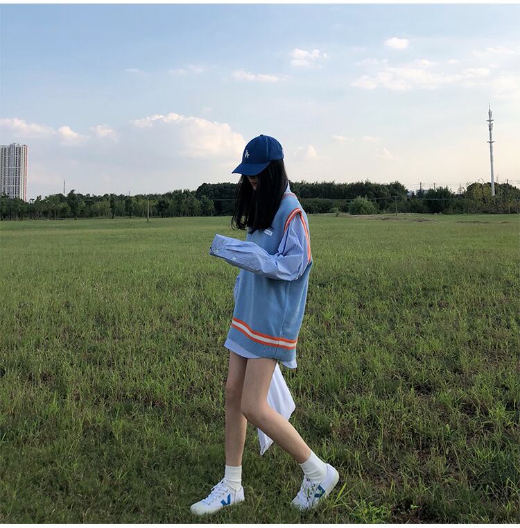 トップス ベスト ノースリーブ Vネック ニット かわいい 大人可愛い シンプル カジュアル おしゃれ お洒落 おとな こなれ感 ラフ メンズライク マニッシュ ボーイッシュ ルーズ 個性的 リラックス レトロ 抜け感 無地 学生 通学 デート お出かけ 女子会 休日 旅行 ブルー 青 春 秋 冬 10代 20代 30代 40代 ママ 女性用 韓国 韓国系 着回し 普段使い 重ね着 体型カバー 楽ちん ワンマイルウェア 定番 プレゼント ファッション コーデ スタイル プチプラ モテ トレンド 流行