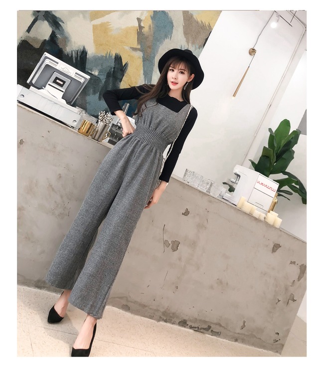 セットアップ サロペット ワイドパンツ アンクル丈 長袖 ストレート ハイウエスト 2点セット ツーピース かわいい 大人可愛い きれいめ カジュアル おしゃれ 無地 春 秋 10代 20代 30代 レディース デート お出かけ ファッション サイズ S M グレー