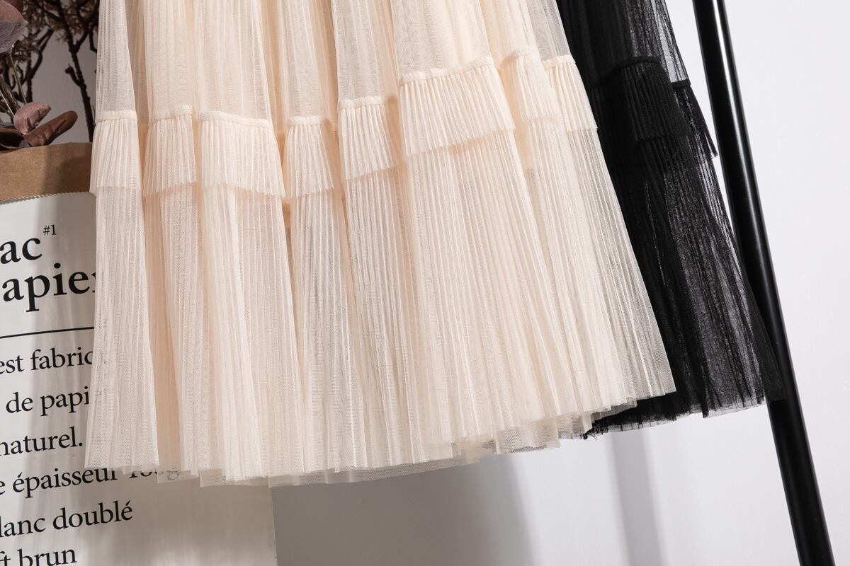 スカート プリーツスカート ミドル丈 Aライン プリーツ ティアード メッシュ かわいい 大人可愛い カジュアル おしゃれ お洒落 無地 春 夏 秋 10代 20代 レディース デート お出かけ ファッション フリーサイズ ブラック