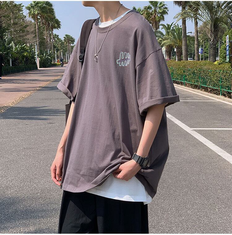 半袖 ロゴ ルーズ Tシャツ トップス カットソー ミディアム丈 袖あり ドロップショルダー ラウンドネック 綿 カジュアル 大人 おしゃれ お洒落 かっこいい こなれ感 メンズライク ボーイッシュ ルーズ クール 柄 春 夏 10代 20代 レディース メンズ ペア 通勤 学生 通学 デート お出かけ 休日 旅行 着回し 普段使い 重ね着 お揃い 韓国 ゆったり ゆる 大きいサイズ M L XL 2XL 3XL 色展開 白 ホワイト 黒 ブラック 灰色 グレー 黄色 イエロー 黄色