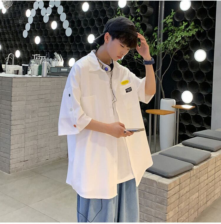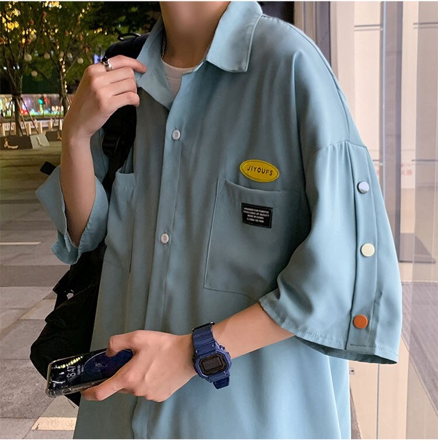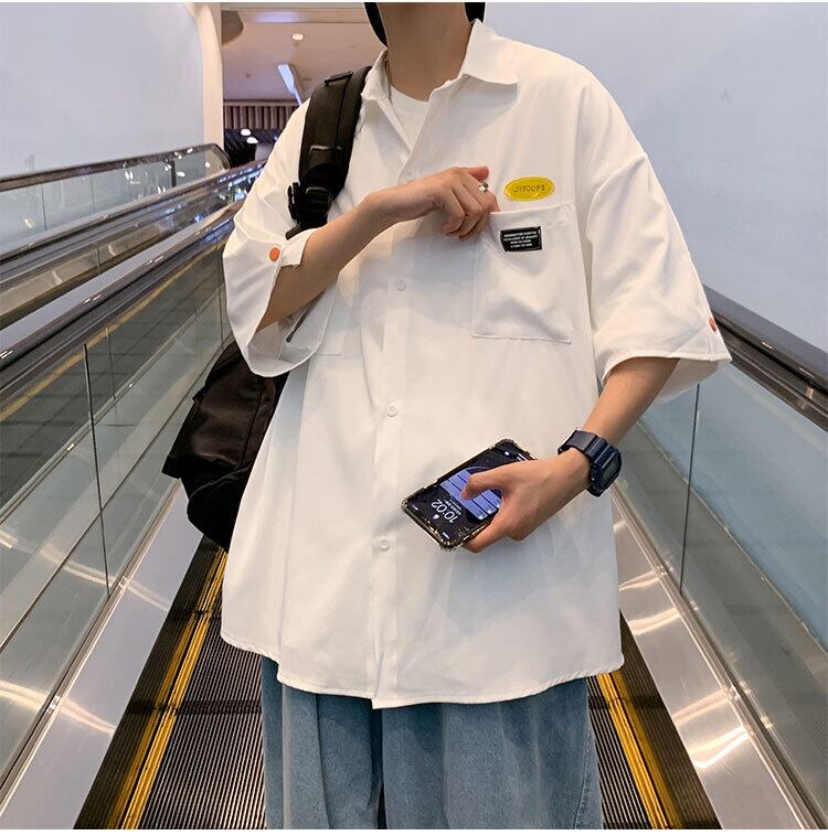 カラフル ボタン 半袖 シャツ トップス 白トップス ミディアム丈 袖あり ドロップショルダー 襟付き ポケット 前開き シンプル カジュアル 大人 おしゃれ お洒落 かっこいい こなれ感 メンズライク ボーイッシュ ルーズ クール ロゴ 春 夏 10代 20代 レディース メンズ ペア 通勤 学生 通学 デート お出かけ 休日 旅行 着回し 普段使い 重ね着 お揃い 韓国 ゆったり ゆる 大きいサイズ S M L XL 2XL 色展開 白 ホワイト 黒 ブラック 水色 ライトブルー