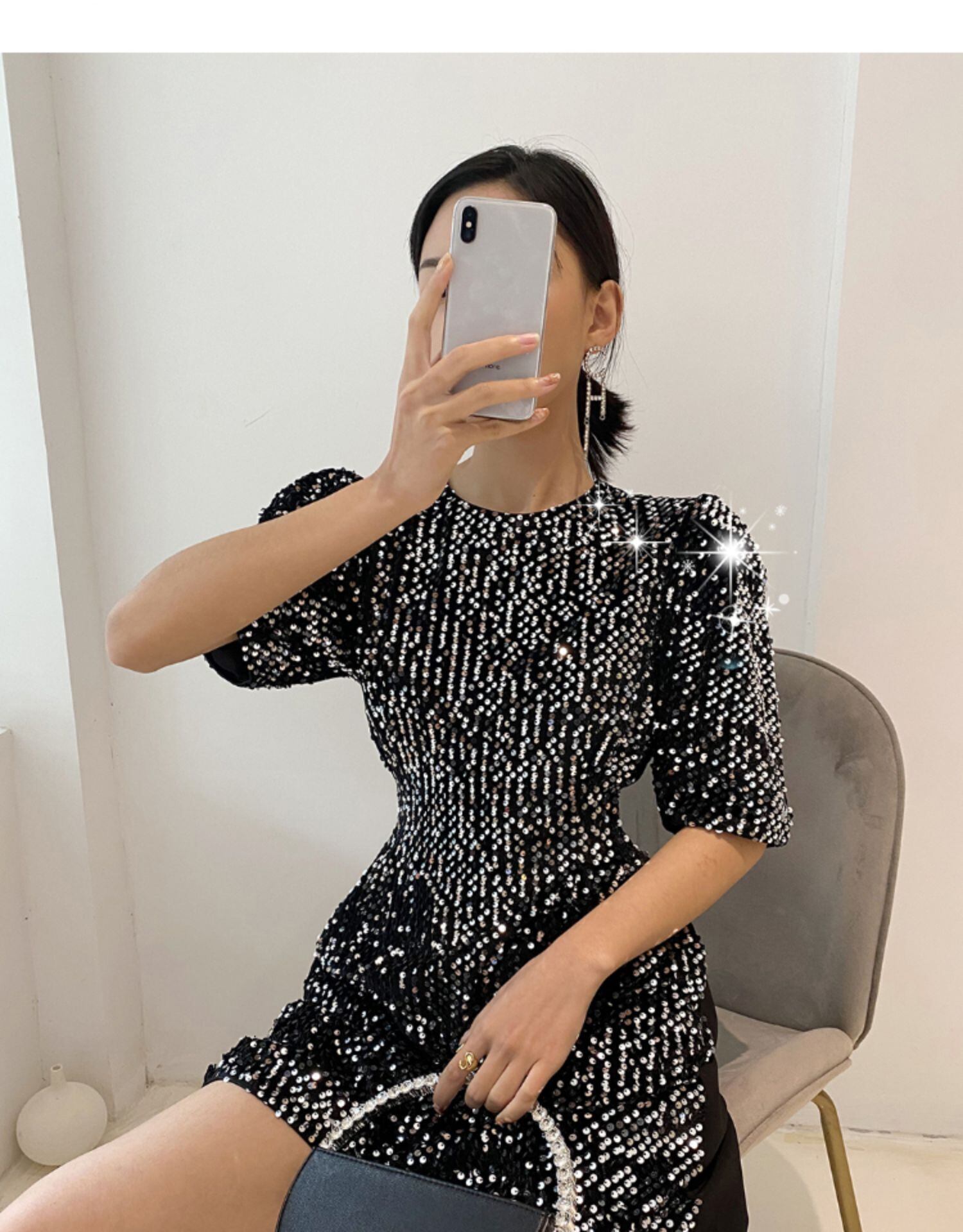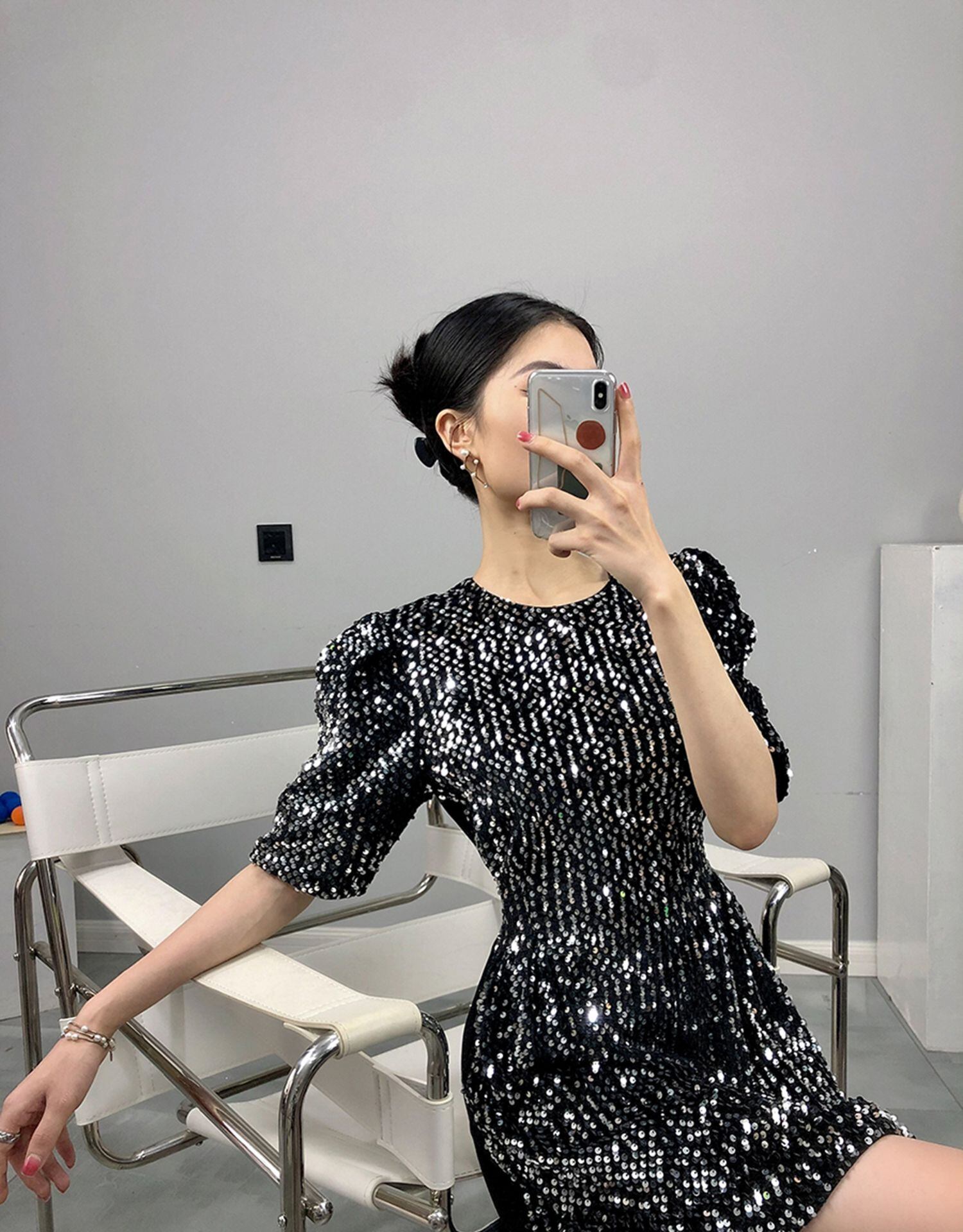 ワンピース ドレス ミニ丈 ショート丈 袖あり 半袖 5分袖 五分袖 ラウンドネック 襟なし スリム タイト 細身 かわいい 大人可愛い きれいめ シンプル カジュアル 大人 上品 おしゃれ お洒落 かっこいい エスニック エキゾチック 大人女子 こなれ感 個性的 クール モード系 セクシー モダン 主役級 存在感 無地 スパンコール 夏 20代 30代 レディース 女性用 パーティー イベント ファッション コーデ スタイル インスタ映え サイズ S M L 色展開 黒 ブラック