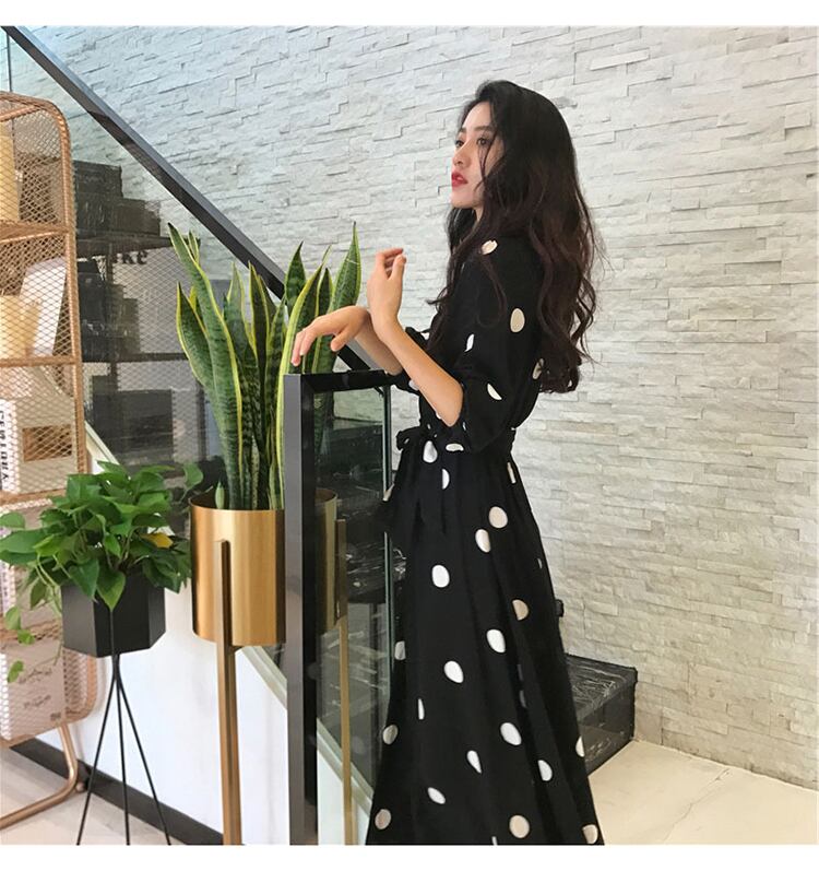 ワンピース ロングスカート ロング丈 半袖 Vネック Aライン シフォン ウエストリボン ハイウエスト かわいい 大人可愛い きれいめ シンプル カジュアル おしゃれ お洒落 水玉 夏 10代 20代 30代 レディース デート お出かけ ファッション サイズ L XL 2XL 3XL 4XL ブラック