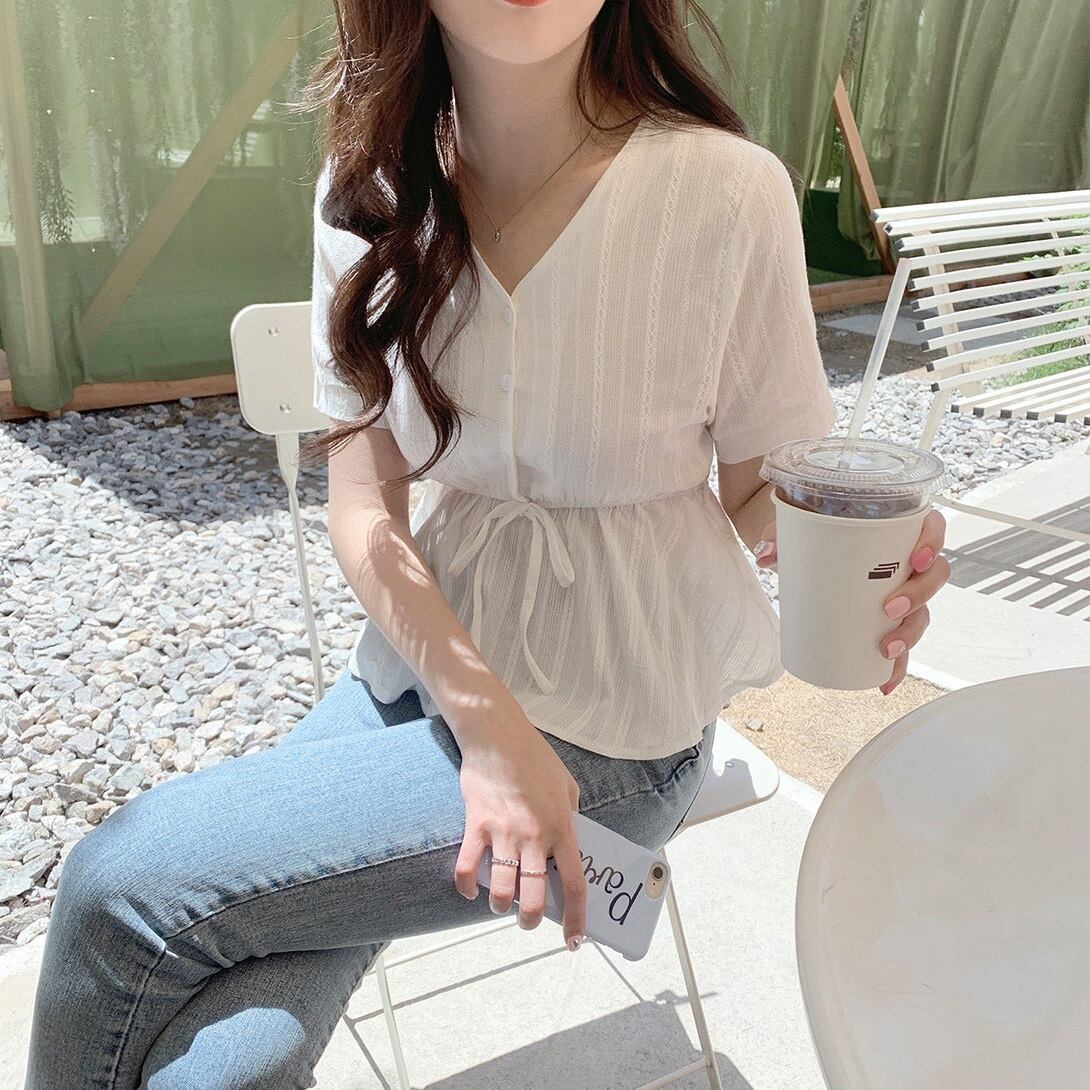 トップス シャツ ブラウス 袖あり 半袖 Vネック ペプラム ウエストリボン かわいい 大人可愛い シンプル カジュアル 清楚 フェミニン おしゃれ おとな ナチュラル こなれ感 ラフ キュート ガーリー 個性的 レトロ 抜け感 無地 学生 通学 デート お出かけ 女子会 休日 旅行 S M L XL ホワイト 白 ブラック 黒 レッド 赤 春 夏 10代 20代 30代 40代 ママ 女性用 韓国 韓国系 着回し 普段使い 重ね着 体型カバー 定番 ファッション コーデ スタイル プチプラ モテ 流行