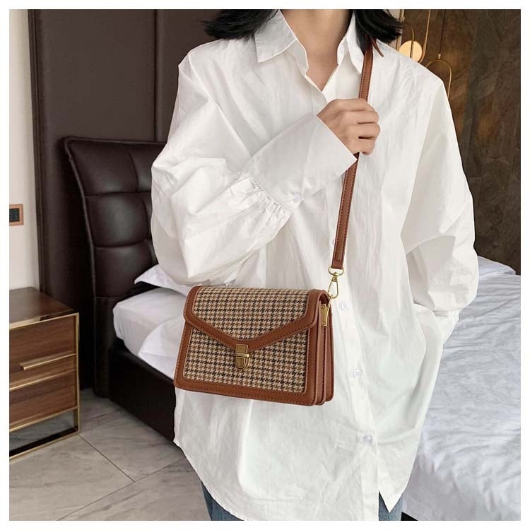 バッグ レディースバッグ ショルダーバック 斜めがけ フラップ かわいい 大人可愛い おしゃれ お洒落 レトロ 千鳥格子 10代 20代 レディース デート お出かけ ファッション 秋 冬 小さめ 色展開 ブラック ブラウン