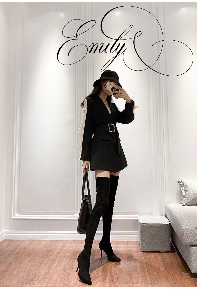 エレガントな美脚を演出する、スエードポインテッドトゥニーハイブーツ。