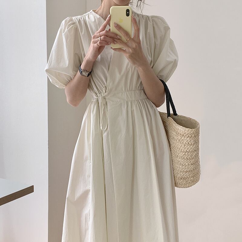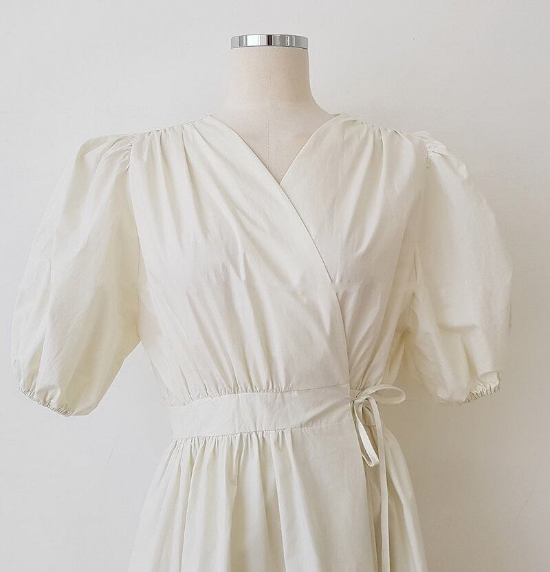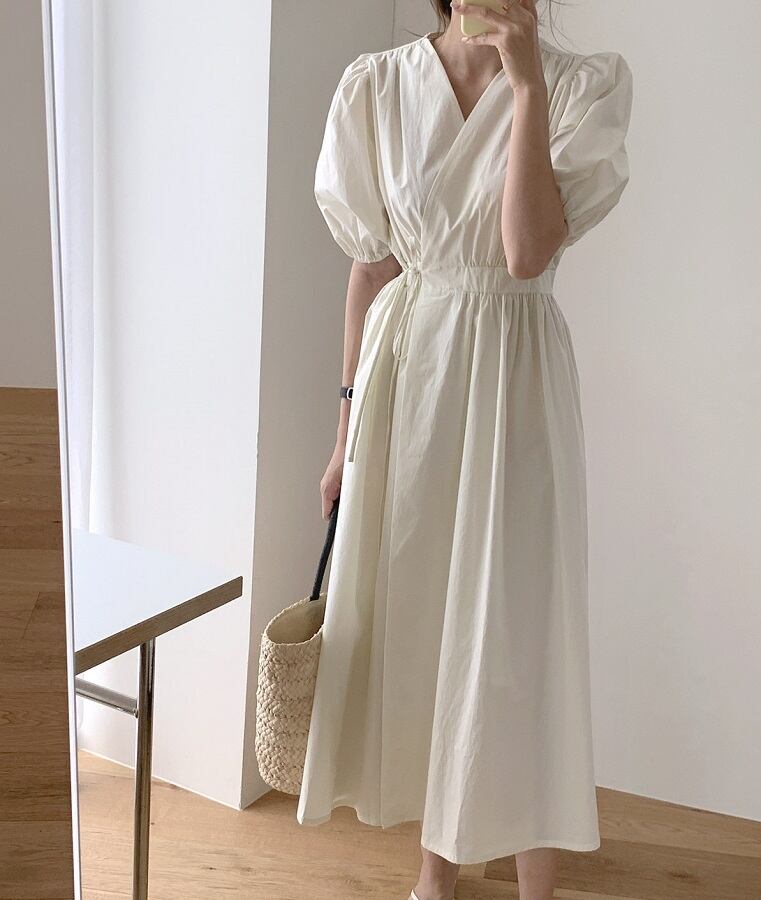 ワンピース ミモレ丈 袖あり 半袖 パフスリーブ カシュクール リボン かわいい 大人可愛い きれいめ シンプル カジュアル 清楚 フェミニン おしゃれ お嬢様 おとな ナチュラル こなれ感 キュート ガーリー 個性的 レトロ 抜け感 無地 学生 通学 デート お出かけ 女子会 休日 リゾート 旅行 散歩 カフェ巡り お呼ばれ お食事会 フリーサイズ ホワイト 白 春 夏 10代 20代 30代 40代 ママ 女性用 韓国 韓国系 着回し 普段使い 体型カバー 楽ちん 定番 ファッション コーデ モテ