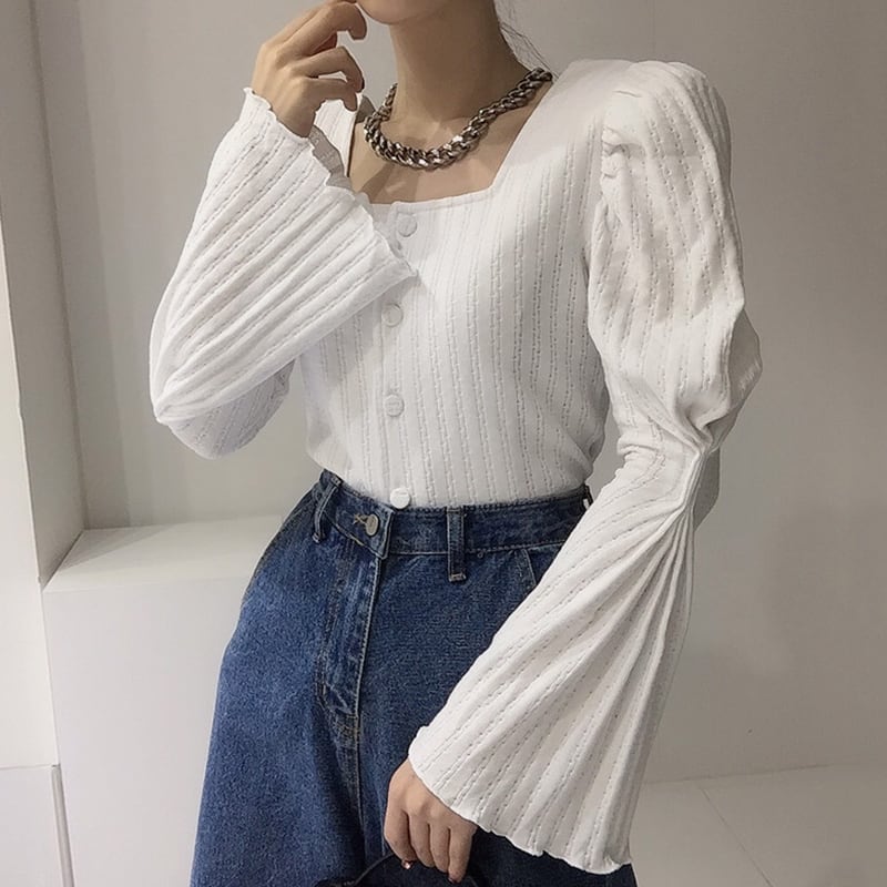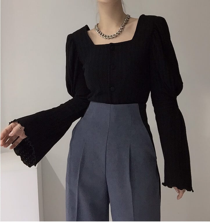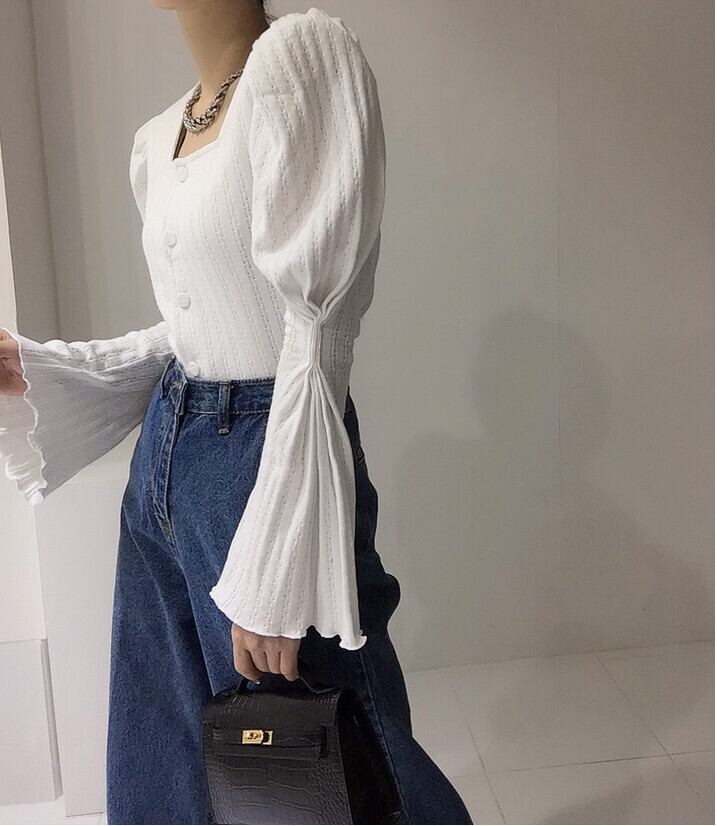トップス 袖あり 長袖 袖コンシャス トランペットスリーブ スクエアネック かわいい 大人可愛い きれいめ シンプル カジュアル フェミニン シック おしゃれ お嬢様 かっこいい クール おとな ナチュラル こなれ感 キュート ガーリー 個性的 レトロ モダン 抜け感 無地 OL 通勤 学生 通学 デート お出かけ 女子会 休日 旅行 フリーサイズ ホワイト ブラック 春 秋 10代 20代 30代 40代 ママ 女性用 韓国 韓国系 着回し 普段使い 体型カバー 楽ちん 定番 ファッション コーデ モテ