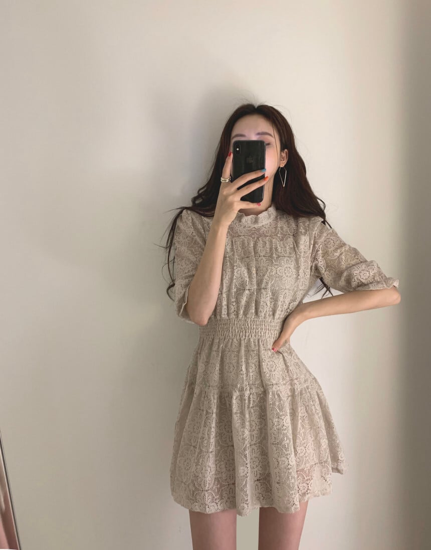 繊細なレースデザインがかわいいガーリーなミニワンピース