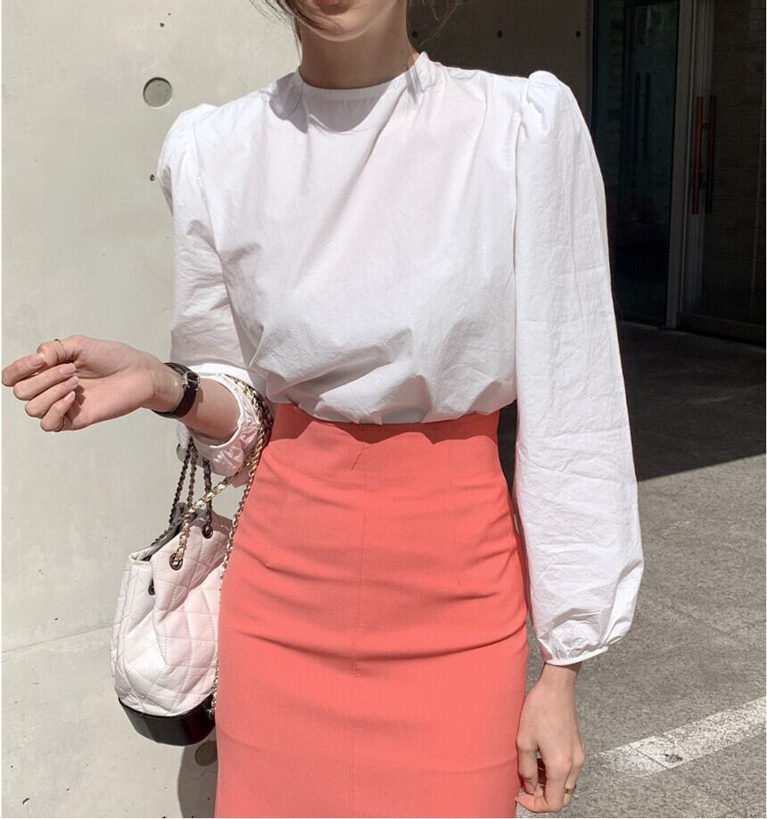 バックリボントップス シャツ ブラウス 袖あり 長袖 ボリューム袖 ラウンドネック かわいい 大人可愛い シンプル カジュアル おしゃれ お洒落 大人可愛い 大人女子 無地 春 夏 10代 20代 30代 レディース オフィス ビジネス OL 通勤 着回し 普段使い サイズ M フリーサイズ 白 ホワイト