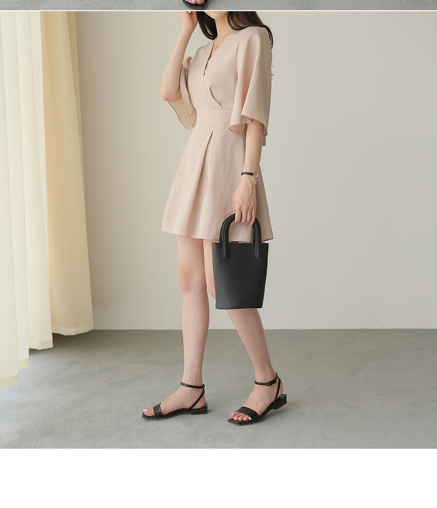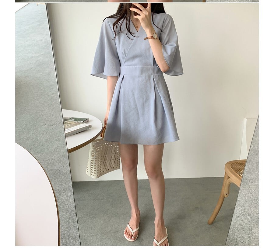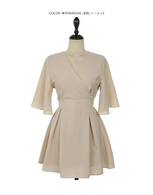 フレアスリーブがかわいいミニワンピース