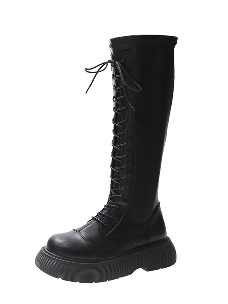 ロングブーツ レースアップ ブーツ レディースシューズ ヒール 5cmヒール 厚底 かわいい 大人可愛い きれいめ シンプル カジュアル 大人 上品 おしゃれ お洒落 かっこいい レトロ ラブリー キュート ラフ ルーズ 個性的 クール セクシー 存在感 こなれ感 無地 レディース 女性用 デート お出かけ 女子会 休日 デイリー 普段使い オルチャン ファッション コーデ スタイル モテ 22.5cm 23.0cm 23.5cm 24.0cm 24.5cm 25.0cm 白 ホワイト 黒 ブラック モカ