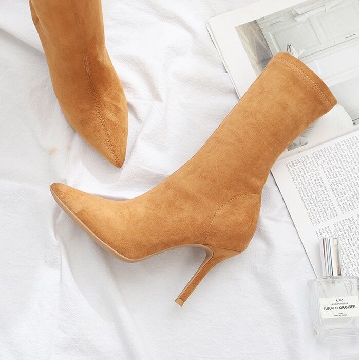 スエード ポインテッドトゥ ソックスブーツ シューズ 靴 ブーツ ミドルブーツ ハイヒール 9cm 6cmヒール ピンヒール 美脚 脚長 スウェード かわいい 大人可愛い きれいめ シンプル 上品 おしゃれ お洒落 無地 秋 冬 10代 20代 30代 レディース 通勤 学生 通学 デート お出かけ 女子会 休日 旅行 普段使い 小さいサイズ 大きいサイズ 21.5cm 22.0cm 22.5cm 23.0cm 23.5cm 24.0cm 24.5cm 25.0cm 色展開 黒 ブラック 灰色 グレー