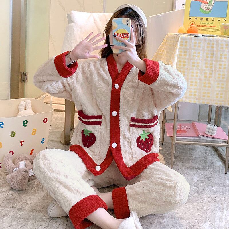 もこもこ ルームウェア パジャマ 上下セット トップス パンツ 2点セット ボトムス セットアップ ズボン ロング ロング丈 袖あり 長袖 Vネック 襟付き リボン ふわふわ ポケット 前開き パール 厚手 ツーピース かわいい 大人可愛い おしゃれ お洒落 キュート ガーリー アニマル柄 くま柄 イチゴ柄 秋 冬 10代 20代 レディース 学生 デート お泊まり 休日 旅行 韓国 楽ちん 暖かい 大きいサイズ M L XL 2XL 色展開 白 ホワイト 青 ブルー 緑 グリーン ベージュ ピンク