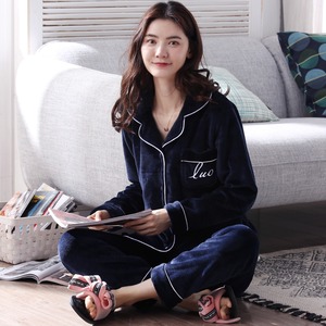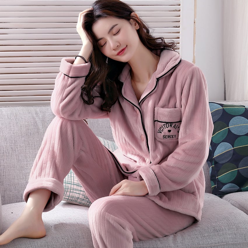 寒い季節に欠かせない、もこもこルームウェア、 パジャマ トップスとパンツの2点セットが新登場!ふわふわモコモコな素材が、心地良い睡眠を誘います。ポケット部に刺繍が施されたトップスとロングパンツがセットになっています。