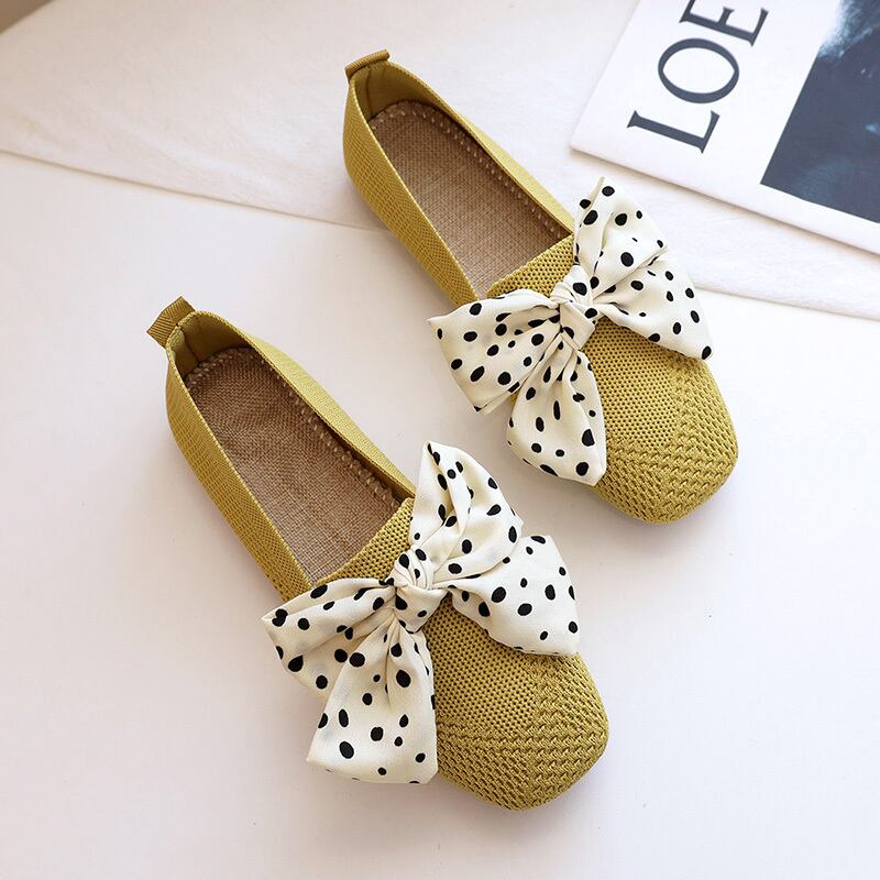 ドット柄 リボン ニット パンプス レディース ぺたんこパンプス 1.5cm ローヒール ぺたんこ ラウンドトゥ かわいい 大人可愛い カジュアル おしゃれ ラブリー キュート ガーリー 主役級 存在感 水玉 春 夏 ドット 通勤 通学 デート お出かけ 旅行 休日 普段使い 韓国 22.5cm 23.0cm 23.5cm 24.0cm 24.5cm 25.0cm 25.5cm 26.0cm 小さい 大きい 黒 赤 黄色 イエロー ブラック レッド カーキ ベージュ