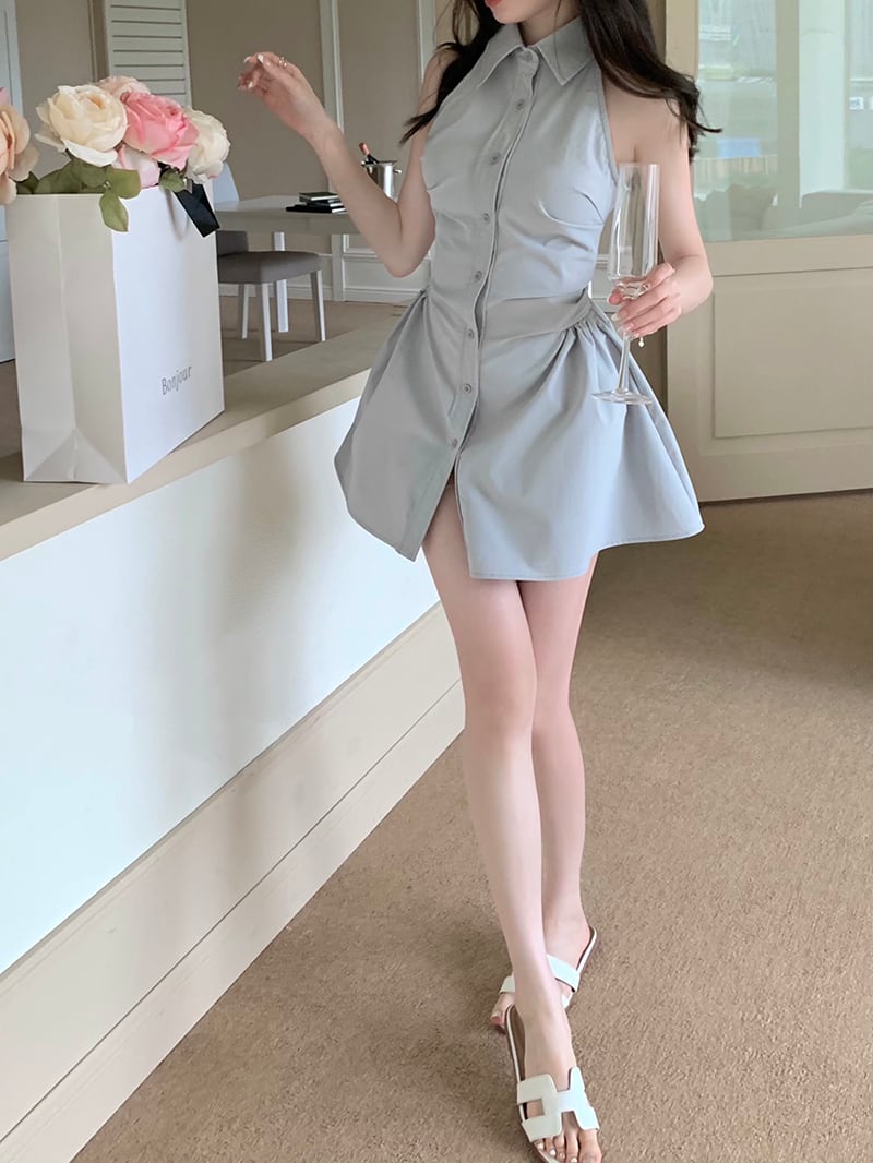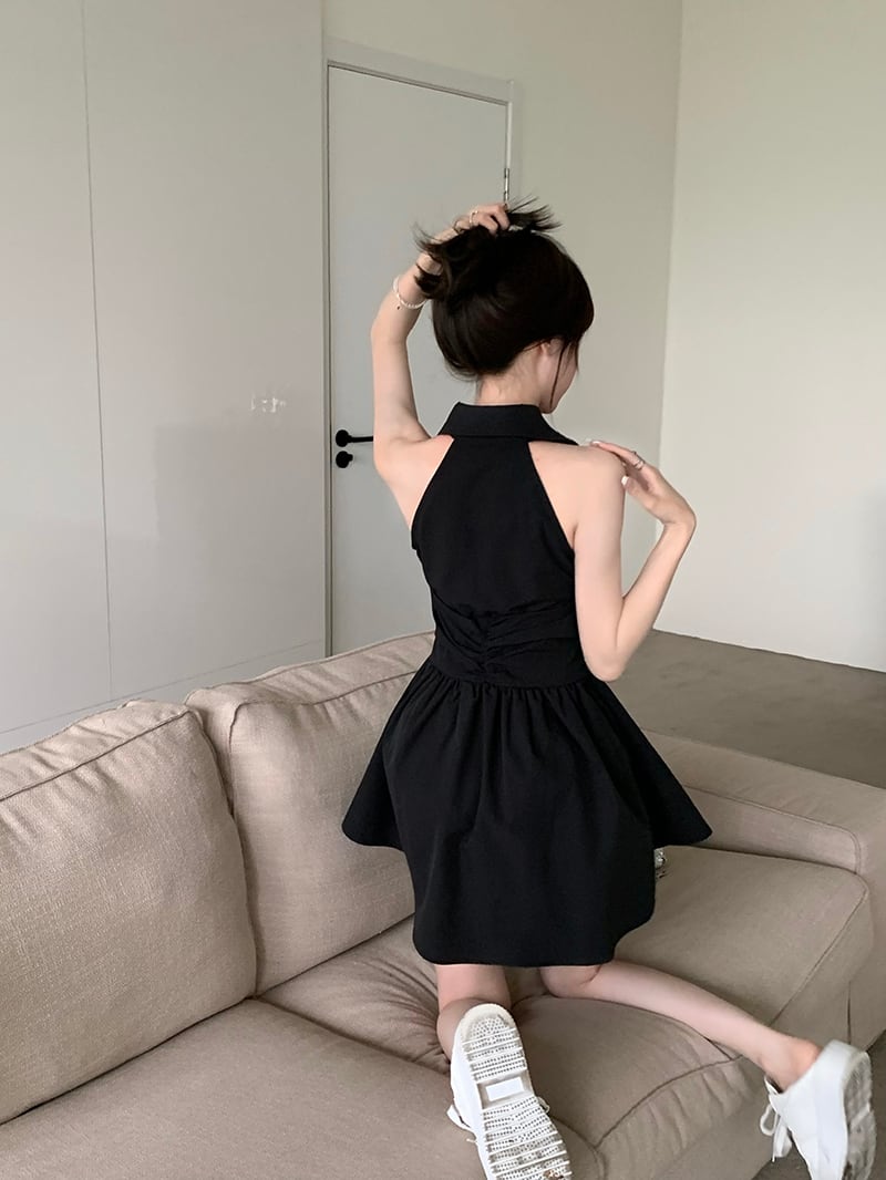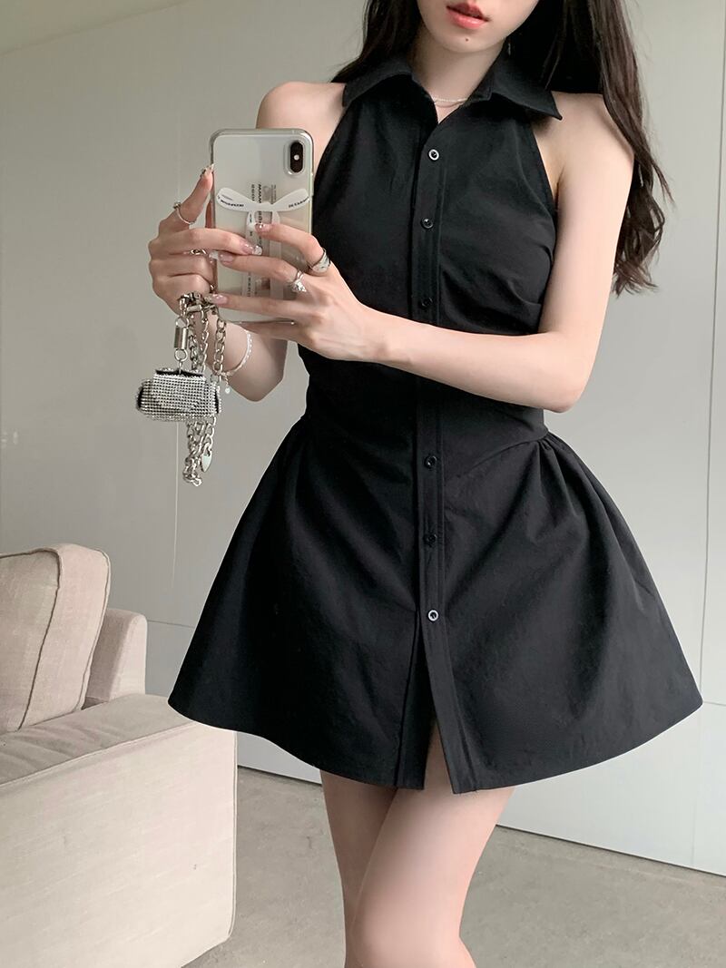 アメリカンスリーブ ミニ丈 シャツワンピース レディース ワンピース シャツワンピ フレア ミニ 膝上 袖なし ノースリーブ 襟付き ポロカラー スリム 細身 Aライン 切り替え ハイウエスト ギャザー 切り替えデザイン かわいい 大人可愛い きれいめ シンプル カジュアル おしゃれ ガーリー キュート 無地 春 夏 通勤 学生 学校 通学 デート お出かけ 旅行 女子会 休日 韓国 S M L 白 ホワイト 黒 ブラック グレー ピンク