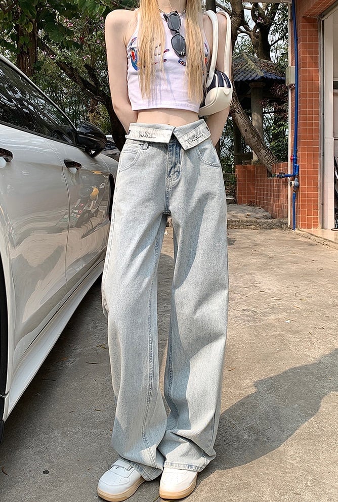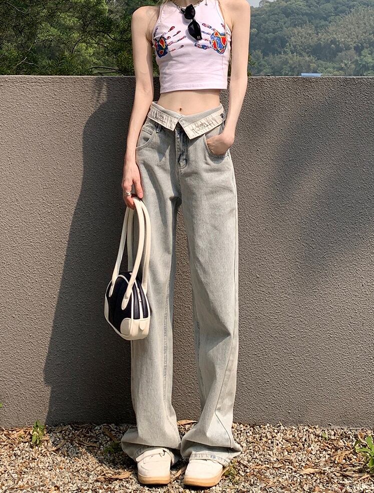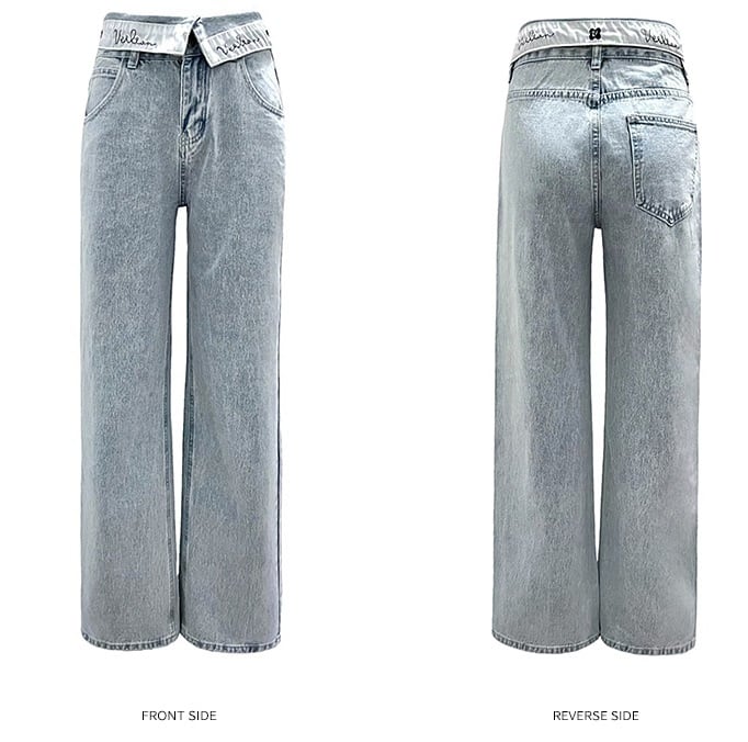 折り返し ハイウエスト デニムパンツ レディース パンツ ボトムス ストレートパンツ ロングパンツ ワイドパンツ ロング ワイド ストレート ストリート ポケット デニム ブルーデニム かわいい 大人可愛い シンプル カジュアル おしゃれ かっこいい こなれ感 メンズライク ボーイッシュ ルーズ クール 無地 春 夏 秋 冬 通勤 学生 学校 通学 デート お出かけ 旅行 女子会 休日 韓国 脚長 普段使い 着回し 定番 XS S M L XL 小さいサイズ ゆったり 水色 ライトブルー