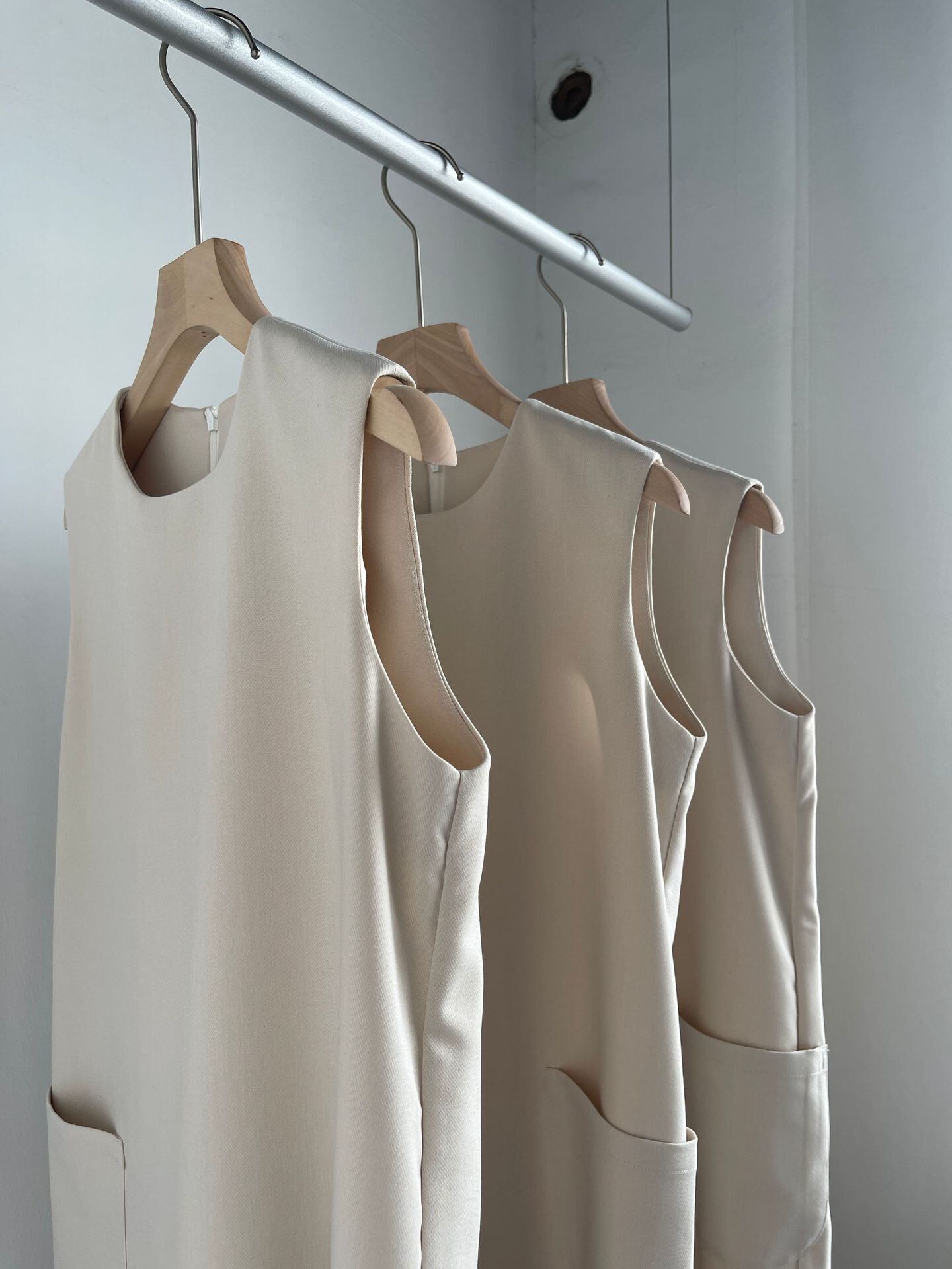 エレガントでありながらカジュアルなスタイルを演出する、大人可愛いノースリーブミモレ丈ワンピースの登場です。ラウンドネックで襟なし、袖なしのシンプルなデザインながら、大きめのポケットがついているので、小物を持ち歩くのにも便利です。