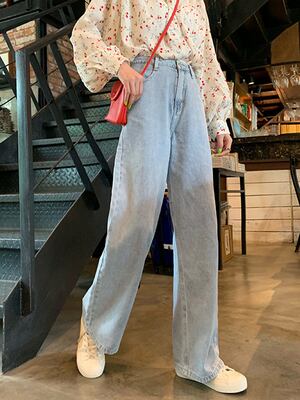 ストレート ハイウエスト デニムパンツ レディース パンツ ボトムス Gパン ストレートパンツ ロングパンツ ワイドパンツ ロング ワイド ポケット デニム ブルーデニム かわいい 大人可愛い シンプル カジュアル おしゃれ こなれ感 無地 春 夏 秋 冬 通勤 学生 学校 通学 デート お出かけ 旅行 公園 女子会 休日 ショッピング 韓国 オルチャン 脚長 普段使い 着回し 定番 S M L 水色 ライトブルー