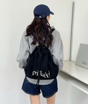 巾着のデザインとファスナーでしっかりと開閉ができるので、中身も安心して収納できます。ドロストの紐を結ぶだけで、バッグの口を閉じることもできるので、大事な荷物もしっかりと守ります。