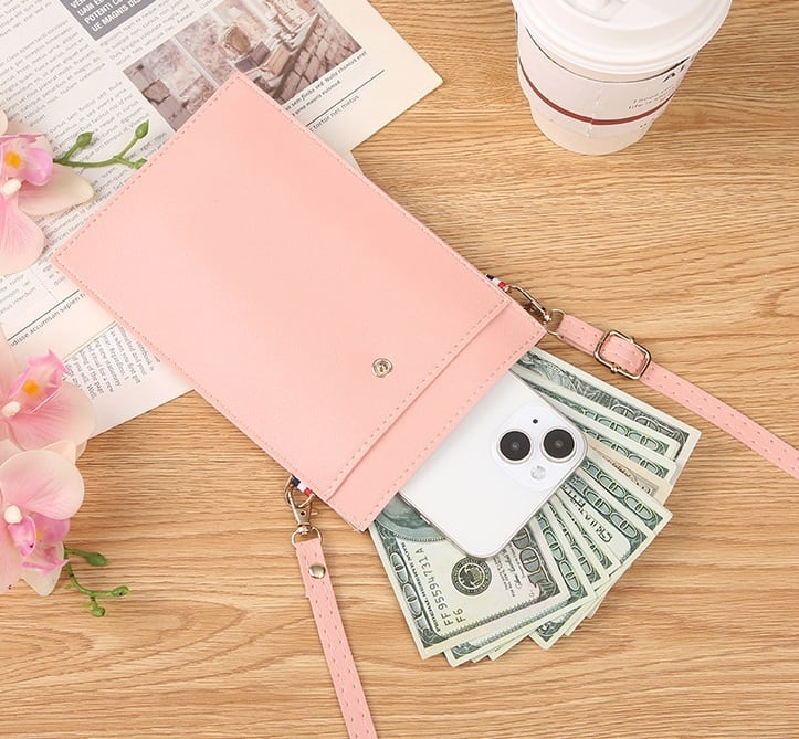 小さめのサイズながらも、スマホや財布、カードなどをしっかり収納できるので、旅行やお出かけ時の身軽なコーディネートにぴったりです。薄型で軽量なので、カバンの中でも邪魔になりません。