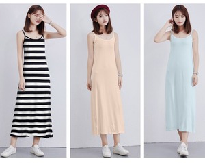 3種類の丈感から選べるインナーキャミソールワンピースです。伸縮性のある素材を使用し、快適な着心地を実現しました。裏地が付いていないワンピースやスカートのインに着て透け対策ができます。また、レイヤードアイテムとしても活躍するアイテムです。