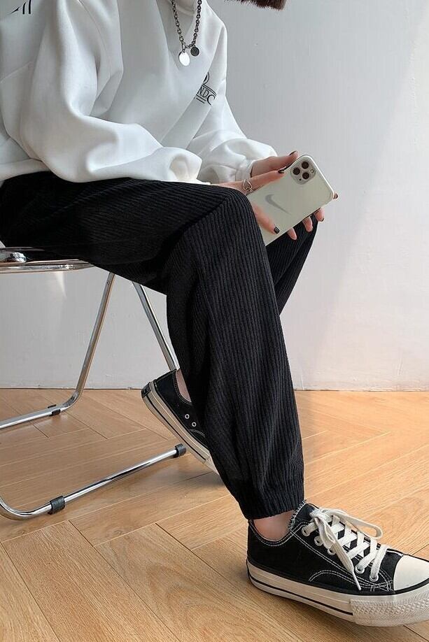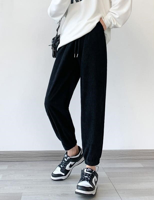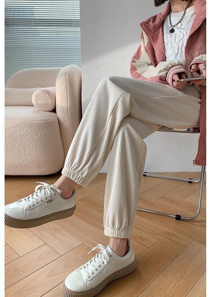 レディース パンツ ボトムス ジョガーパンツ ロング 9分丈 アンクル丈 ポケット ハイウエスト ドロスト 裾ゴム 裏起毛 コーデュロイ シンプル カジュアル 上品 おしゃれ レトロ こなれ感 ベーシック 無地 秋 冬 ママ 女の子 学生 学校 通学 お出かけ アウトドア 公園 女子会 休日 ショッピング カフェ 韓国 オルチャン 暖かい 防寒 体型カバー 脚長 プチプラ 普段使い S M L XL 2XL 3XL 大きいサイズ 黒 ブラック 茶色 ブラウン オフホワイト ベーシックカラー カラバリ