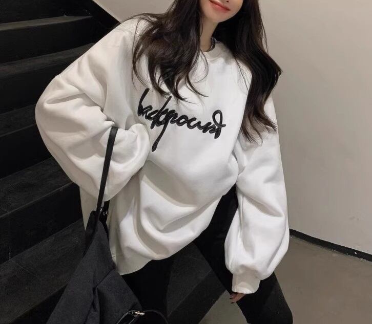 着心地の良さとおしゃれなデザインが魅力の、英字ロゴオーバーサイズトレーナーです。ゆったりとしたシルエットとドロップショルダーが、こなれ感を演出します。襟なしのデザインで、ラウンドネックが顔周りをすっきりと見せてくれます。通常タイプと裏起毛タイプが選べて、春から冬まで長く活躍してくれます。シンプルでありながらも、英字ロゴがアクセントになっており、カジュアルながらもおしゃれさを引き立てます。さまざまなシーンで着回せるので、休日のお出かけやデート、通勤や学校など、幅広いシーンにおすすめです。 Sサイズから2XLサイズまで展開しており、大きいサイズの方でもゆったりと着ることができます。白と黒の2色展開で、モノトーンコーディネートにもぴったりです。このトレーナーは、日常のおしゃれを楽しみながら、体型カバーもできるアイテムです。ワードローブに追加して、おしゃれなスタイリングを楽しんでください。