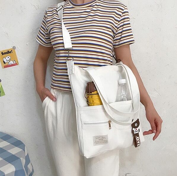 便利でかわいいハンドショルダーマルチポケットキャンバスバッグが登場しました!大人可愛いデザインで、シンプルながらもスタイリッシュさが漂う一品です。たくさんのポケットがあり、収納力も抜群。通勤や通学、デートやお出かけ、運動や旅行、女子会や休日、普段使いなど、様々なシーンで活躍してくれます。A4サイズも収納可能で、大きさもちょうどいいですよ。カラーバリエーションも豊富で、白・黒・黄色・グレーなどお好みのカラーを選んでください。しっかりとした帆布素材で作られており、耐久性もばっちり。魅力的なマザーズバッグとしてもおすすめです。キャンバスバッグをお探しの方は、ぜひこの機会に手に入れてみてください。