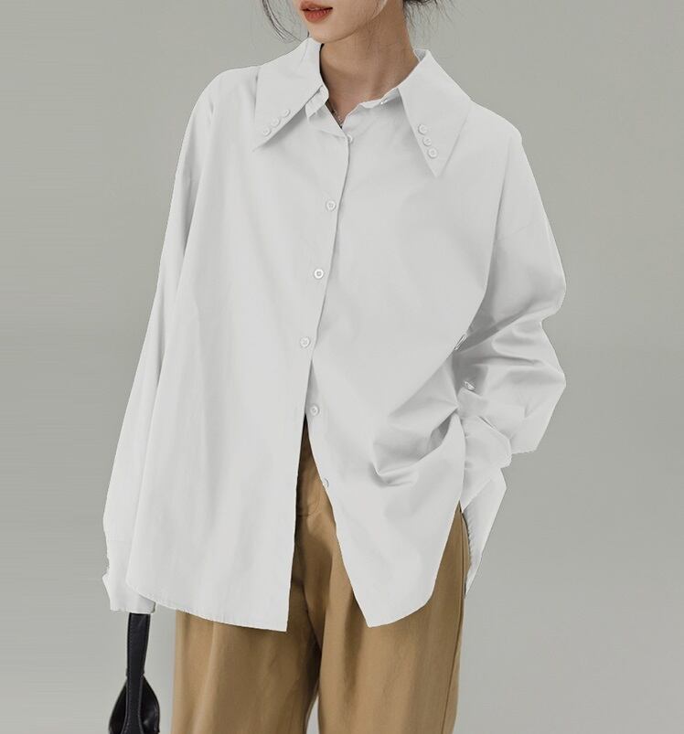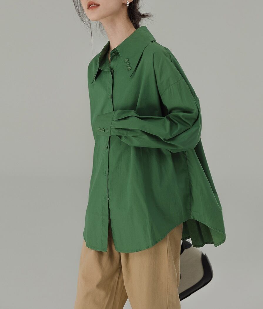トレンド感漂う3連ボタンのポロ襟シャツの登場です。さまざまなシーンで活躍するアイテムとして、シンプルなデザインながらも、アシンメトリーな丈長やドロップショルダーのディテールがお洒落な一枚。華やかさをプラスしてくれるポロカラーの角襟もポイントです。前開きなので、着脱も簡単で忙しい朝にも大活躍。幅広いコーディネートに合わせやすく、大人可愛さとこなれ感のあるスタイルを叶えてくれます。お仕事やデート、お出かけなど様々なシーンで活躍し、体型もカバーしてくれるルーズなシルエットが魅力。春から秋まで着回しの効くアイテムとして重宝すること間違いありません。オフィスから休日まで、さまざまなシーンでお使いいただけますよ。S、M、Lという豊富なサイズ展開で、多くの方に着ていただけます。白、グレー、緑といったカラーバリエーションもあり、お好みやコーディネートに合わせてお選びいただけます。ぜひ、ご自身のスタイルに合わせてお楽しみください。