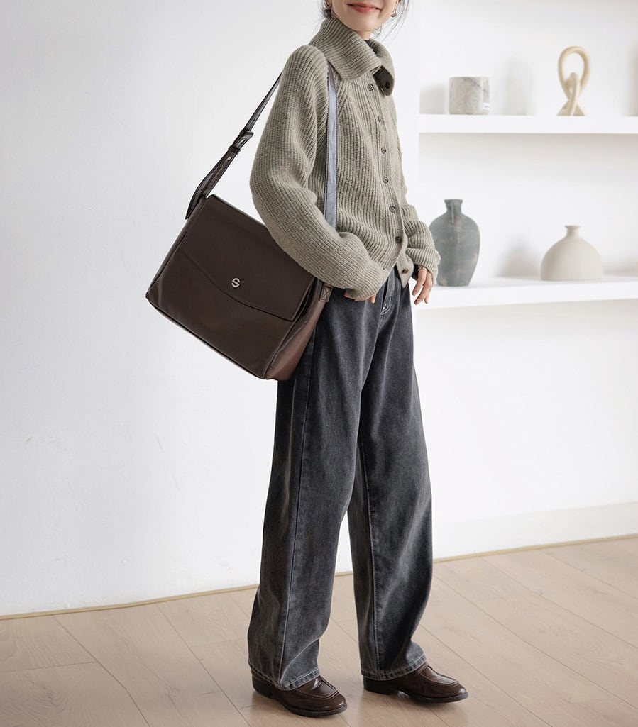 ダークグレーの無地のデザインで洋服の色味との相性も良いので、季節問わずお使いいただけます。