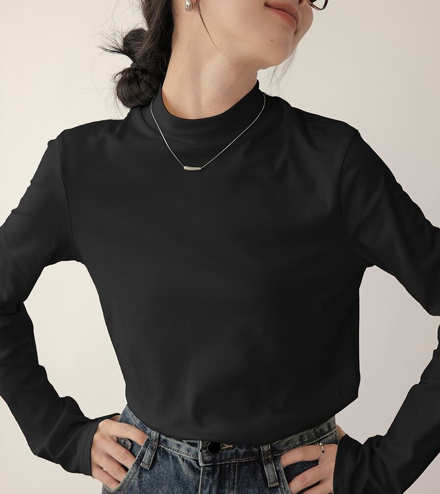 シンプルなデザインが魅力の半ハイネックプルオーバー。トップスとしてだけでなく、インナーとしても活躍する一枚です。カジュアルなオフィスシーンからデートまで、様々なシーンでお使いいただけます。