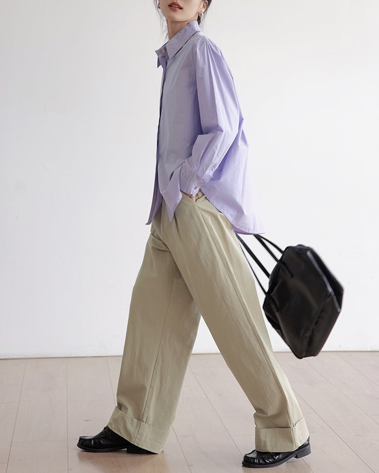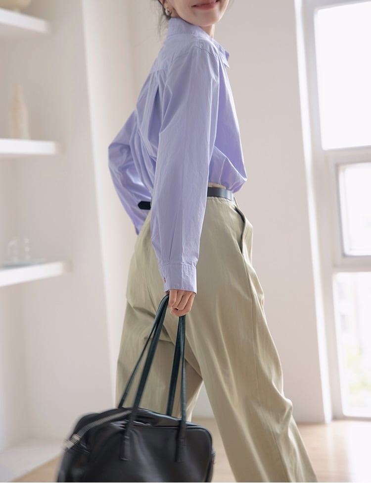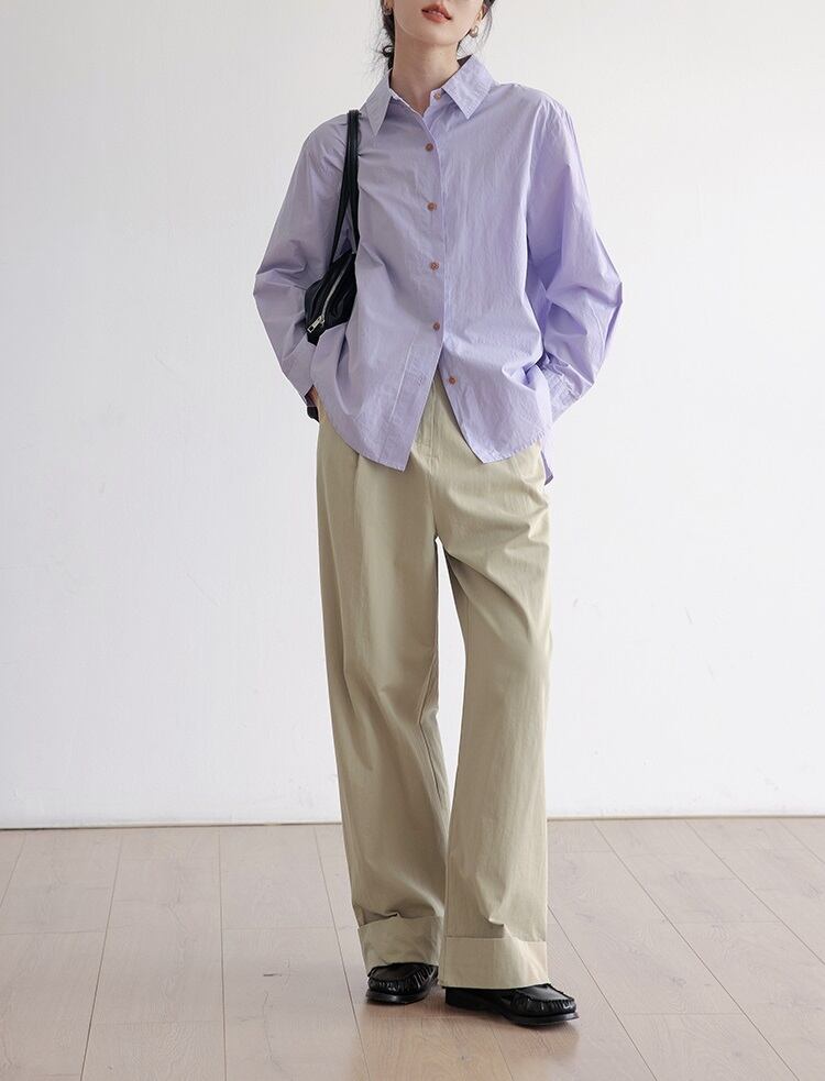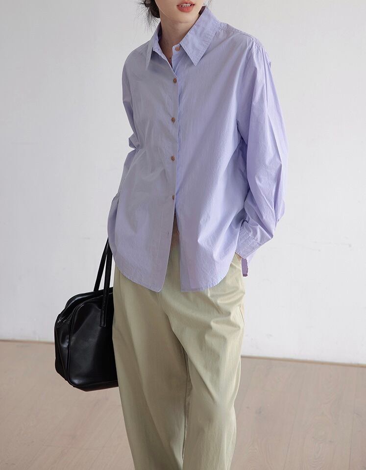 シンプルで上品なポロ襟シャツ。丈長のデザインで、女性らしさを引き立てます。角襟とボタンデザインがかわいらしさをプラス。オフィスや学校、デートなど、様々なシーンに活躍します。カジュアルにもきれいめにもコーディネート可能で、こなれ感のあるスタイリングを楽しめます。ホワイトやパープルなどの春らしいカラーバリエーションも豊富です。ママ、学生、ビジネスウーマンなど、幅広い世代におすすめです。ゆったりとした着心地で、重ね着のレイヤードスタイルにもぴったりです。韓国ファッションにもマッチし、普段使いにも活躍するアイテムです。