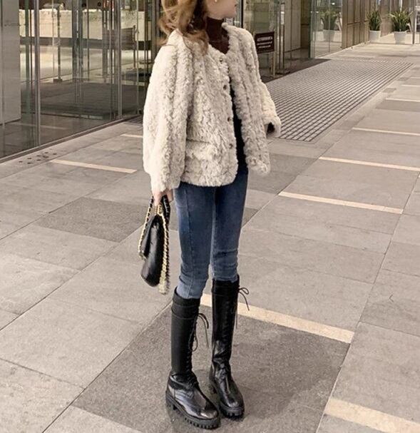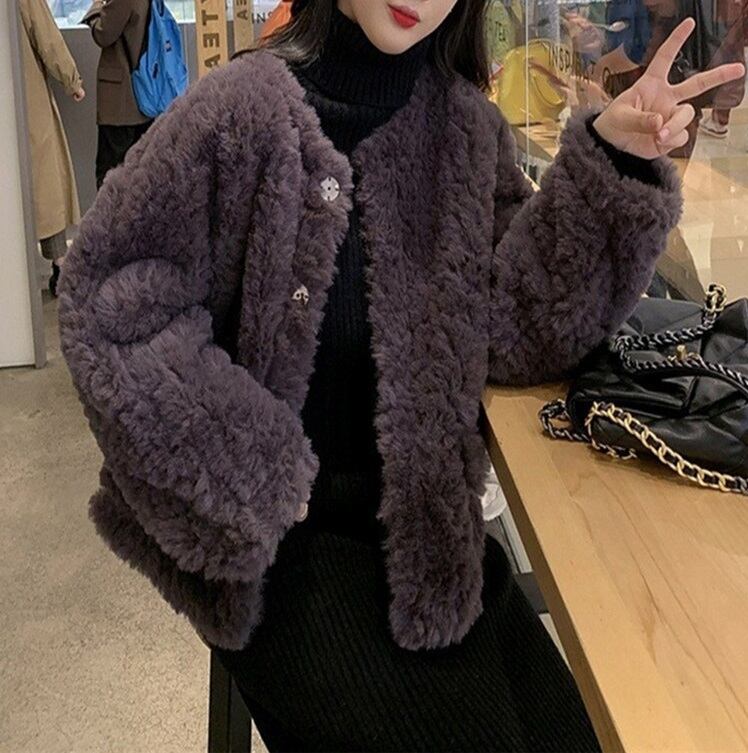 トレンド感あるショート丈の総ファーコートが登場しました!ノーカラーデザインで大人っぽさを演出し、総フェイクファーなので、もこもことしたふわふわの触り心地が特徴です。隠しボタンの仕様で、防寒性もバッチリ。ベーシックなデザインなので、どんなコーディネートにも合わせやすく、重ね着にも最適です。カジュアルにもキレイめにも着こなせるので、デートやお出かけ、休日のおしゃれにぴったり!サイズ展開も豊富なので、S〜Lサイズまでの方々にもお楽しみいただけます。この冬は暖かく、おしゃれに過ごしたい方に、是非おすすめの一枚です。