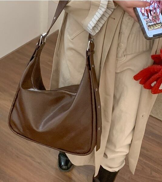 たくさんの荷物もすっぽり入る大容量のPUレザーショルダーバッグ。シンプルなデザインで、どんなコーディネートにもピッタリなアイテムです。斜めがけや肩がけ、手持ちでの持ち方も自由自在。大人可愛い雰囲気が漂うバッグは、通勤や通学、デートなどあらゆるシーンで活躍します。女子会やお出かけ、旅行にもぴったりなサイズ感です。