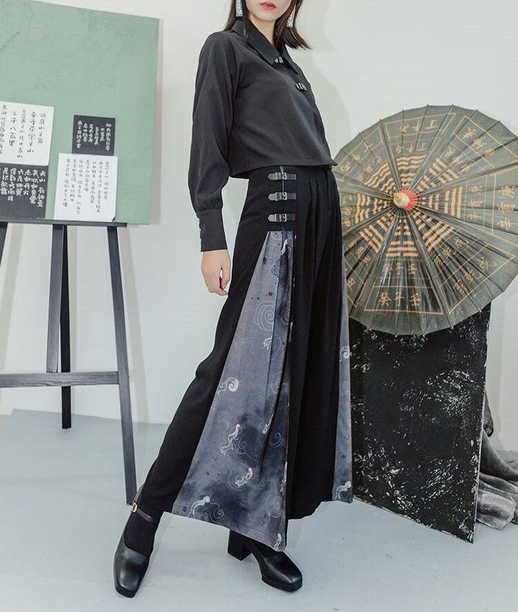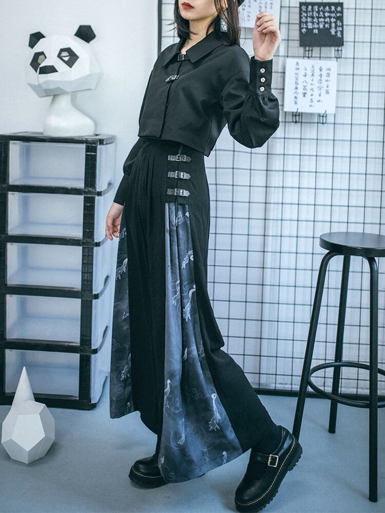チャイナ風 ハイウエスト ワイドパンツ レディース パンツ ボトムス ロングパンツ 9分丈 チャイナ ワイド プリーツ ベルト かわいい 大人可愛い カジュアル おしゃれ かっこいい アジアン こなれ感 ルーズ 個性的 クール モード系 主役級 存在感 アニマル柄 春 夏 秋 冬 ママ 通勤 学生 学校 通学 デート お出かけ 旅行 公園 女子会 休日 ショッピング カフェ モノトーン 体型カバー 脚長 普段使い 着回し S M L XL ゆったり 黒 ブラック