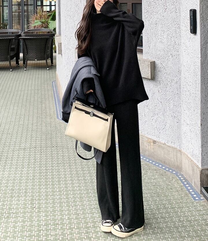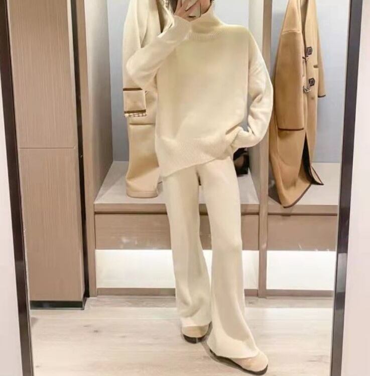 ニット セットアップ トップス パンツ 上下セット 2点セット レディース ボトムス ルームウェア セーター 部屋着 ロングパンツ ロング 長袖 ハイネック ハイウエスト リブ かわいい 大人可愛い きれいめ シンプル カジュアル おしゃれ こなれ感 ラフ 抜け感 無地 春 秋 冬 ママ 学生 学校 通学 デート お出かけ 旅行 公園 休日 楽ちん 暖かい 体型カバー 脚長 普段使い 着回し レイヤード ゆったり フリーサイズ 黒 ブラック グレー オフホワイト カーキ ライトアプリコット