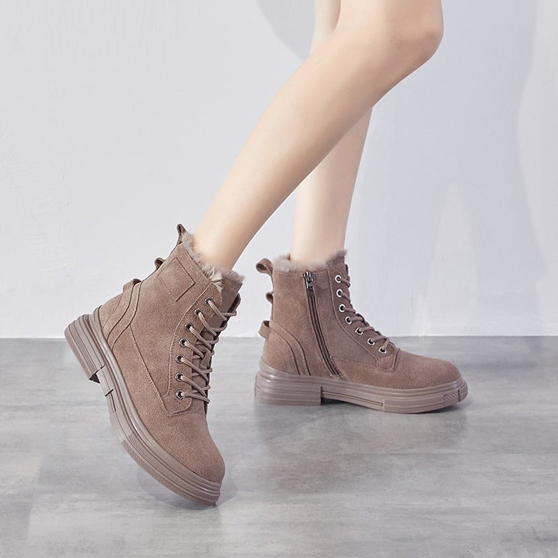 レースアップ ファー 裏起毛 ショートブーツ シューズ レディース ブーツ 3.5cm ミドルヒール ラウンドトゥ もこもこ ふわふわ 防寒 暖かい スウェード かわいい 大人可愛い シンプル カジュアル おしゃれ 無地 秋 冬 通勤 通学 デート お出かけ 旅行 公園 休日 デイリー 普段使い 韓国 22.5cm 23.0cm 23.5cm 24.0cm 24.5cm 黒 茶色 ブラック ブラウン