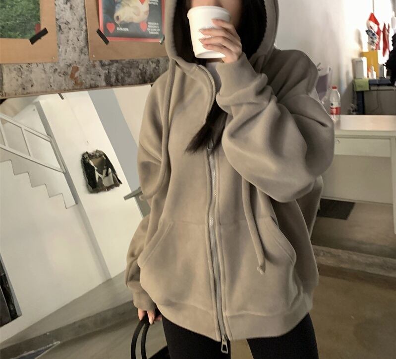 ゆったりとしたシルエットが特徴のベロア フード付き ジップアップ パーカー。袖のドロップショルダーと長めの丈が、こなれ感ある大人可愛いスタイルを演出します。首まわりはフードがついているので、チャックを閉じてきちんと感を出すもよし、フードをかぶってカジュアルに着こなすもよし。ポケットがついているので、小物の収納にも便利です。厚手で暖かいベロア素材を使用しているので、寒い季節や冷房対策にもおすすめです。ライトグレー、ダークグレー、アプリコットの3色展開で、お好みやコーディネートに合わせてお選びください。サイズはS、M、Lの3サイズ展開で、ゆったりとした着心地でご使用いただけます。普段使いから旅行やお出かけまで、様々なシーンに活躍するアイテムです。このパーカーを着て、自信を持って新しい日々を過ごしましょう!