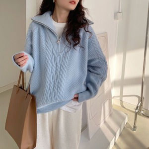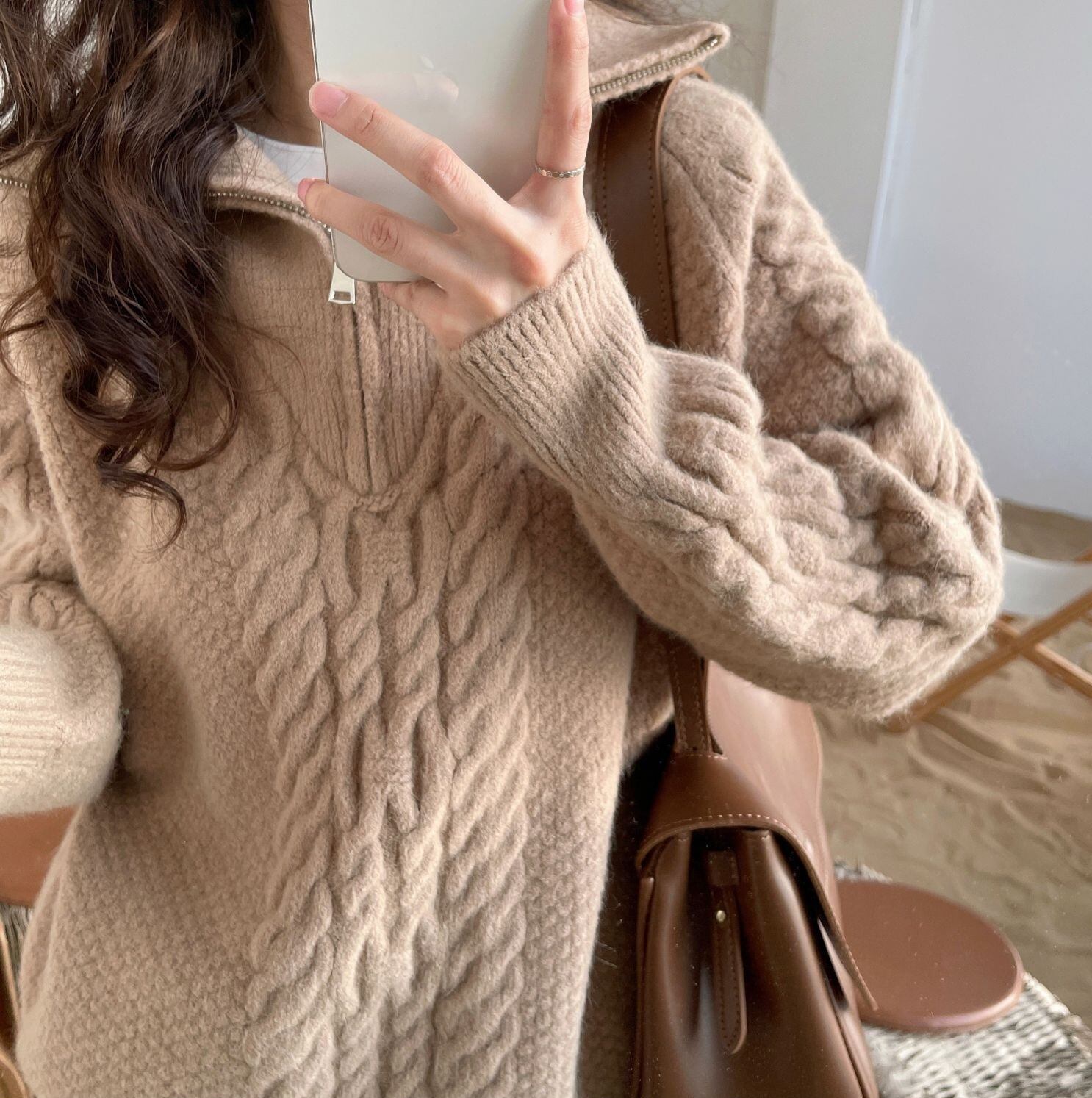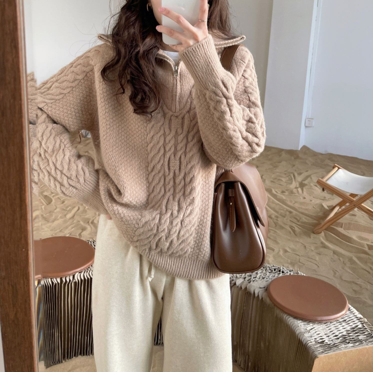 ハーフジップ ケーブル編み ニットセーター レディース トップス ニット セーター プルオーバー 丈長 長袖 ハイネック 襟付き スタンドカラー ファスナー ケーブルニット かわいい 大人可愛い きれいめ シンプル カジュアル おしゃれ ルーズ 春 秋 冬 ママ 通勤 学生 学校 通学 デート お出かけ 旅行 公園 女子会 休日 ショッピング カフェ 重ね着 暖かい 体型カバー 普段使い 着回し S M L ゆったり オフホワイト カーキ ピンク 水色 レッド ライトブルー 緑 グリーン
