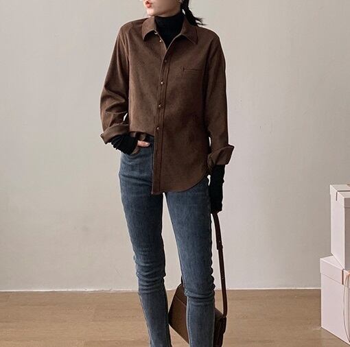 ベロア素材が華やかさをプラスする長袖シャツ。襟付きのポロカラーや前開きのデザインが上品できれいめな印象を与えます。シンプルながらも大人可愛い雰囲気で、おしゃれな着こなしを叶えます。中厚手の生地は暖かく、春秋冬の季節やオフィスや通学、デートなど様々なシーンにマッチします。カラーバリエーションも豊富で、体型カバーや着回しにも便利。ワードローブに取り入れると、様々なシーンで活躍すること間違いなしです。是非、お試しください。