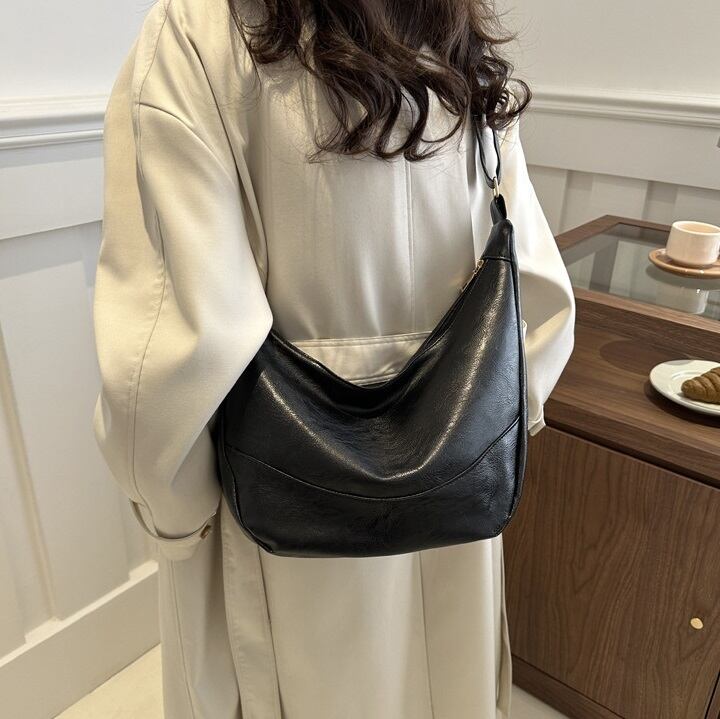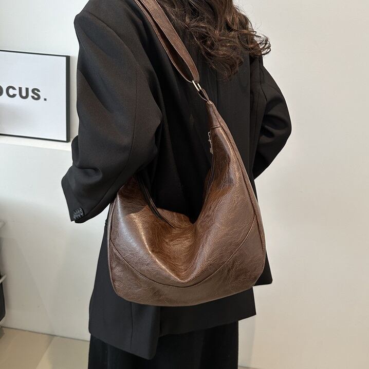 大容量 斜め掛け レザー ショルダーバッグ バッグ カバン レディース ショルダー 斜めがけ 肩がけ ラウンド 丸型 ファスナー かわいい 大人可愛い きれいめ シンプル カジュアル 上品 お洒落 レトロ 無地 通勤 通学 デート お出かけ 旅行 お買い物 女子会 休日 普段使い 韓国 春 夏 秋 冬 大きめ 大きい 黒 茶色 ブラック ブラウン コーヒーブラウン