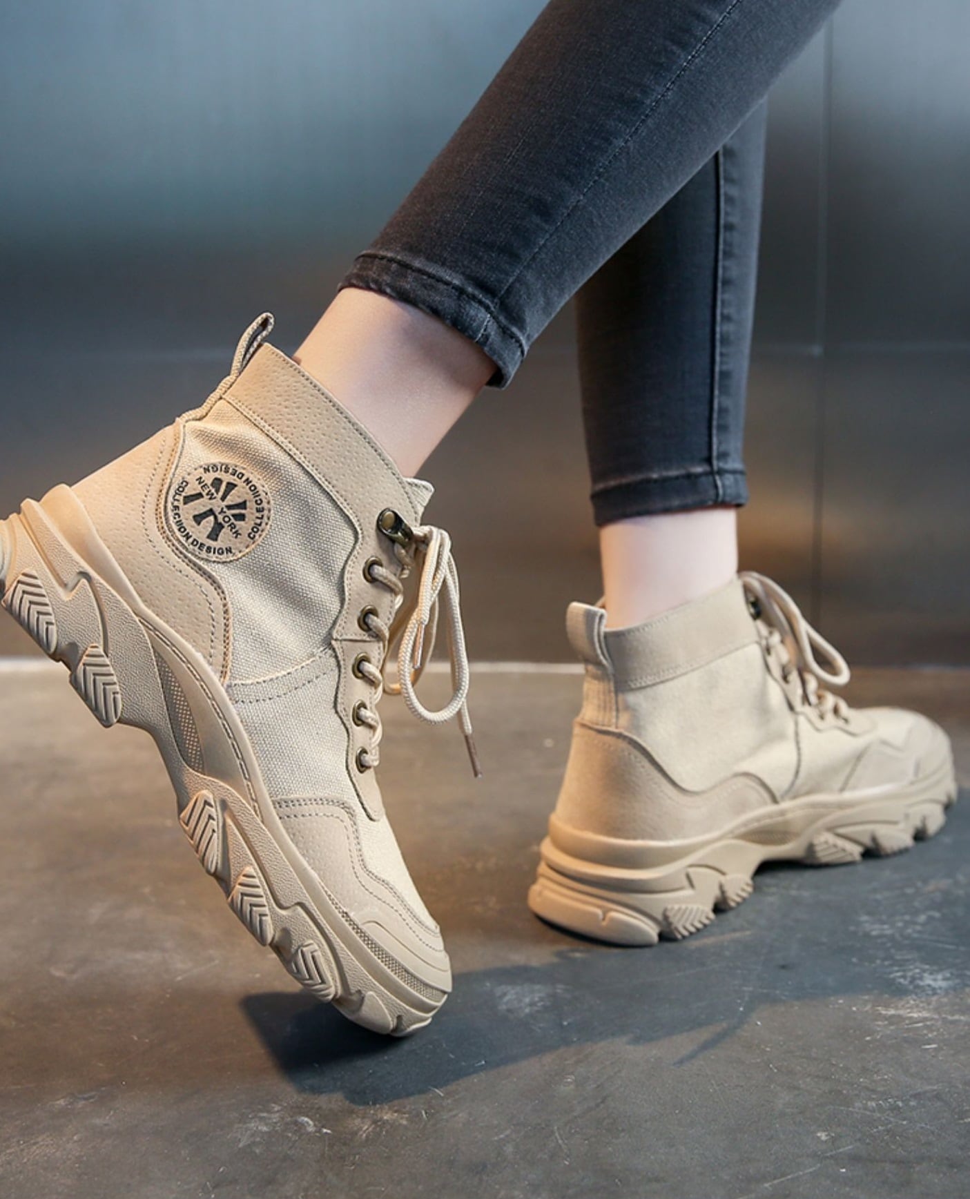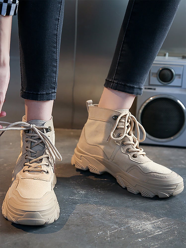 ハイカット レースアップ スニーカー シューズ レディース ミドルヒール 4cm ラウンドトゥ キャンバス かわいい 大人可愛い シンプル カジュアル おしゃれ かっこいい ボーイッシュ クール ロゴ 春 夏 秋 冬 オールシーズン 通勤 通学 デート お出かけ 運動 アウトドア 旅行 公園 休日 普段使い 22.5cm 23.0cm 23.5cm 24.0cm 24.5cm 25.0cm 大きい カーキ