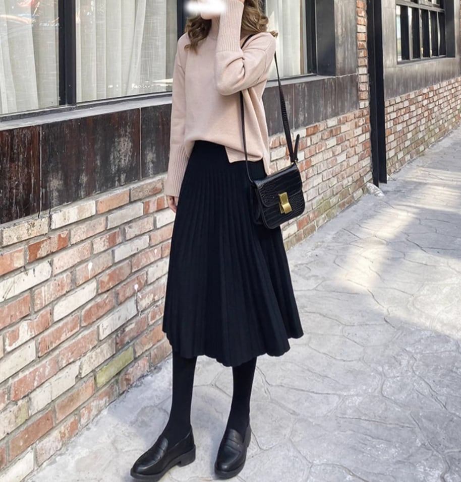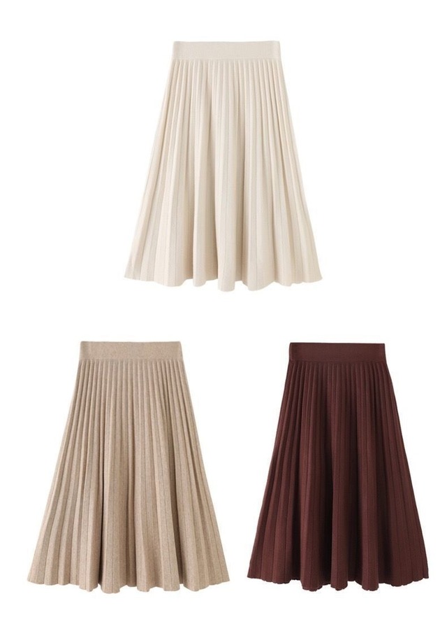 自信を持って輝く女性にぴったりのウエストゴム ニット プリーツスカート。季節やシーンを選ばず、長く愛用できる万能アイテムとしておすすめします。