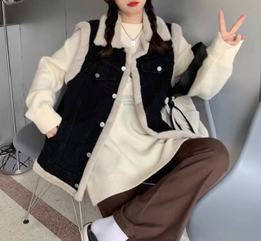 ファッションアイテムのトレンドを押さえた、もこもこファー デニムベストが登場しました。ふわふわとしたファーコートとクールなデニムが融合した、個性的でおしゃれな一枚です。丈長で襟が付いているので、オシャレ度も大幅UP!ノースリーブなので重ね着にも最適で、カジュアルからきれいめなスタイルまで自在にアレンジ可能です。前開きのボタン付きで着脱も簡単。厚手の裏起毛が寒い季節も暖かく包み込みます。普段使いから旅行まで幅広く活躍すること間違いなし!ママや学生、大人の女性まで幅広い層におすすめのアイテムです。ショッピングやカフェ、女子会など、様々なシーンでオシャレを楽しんでください。