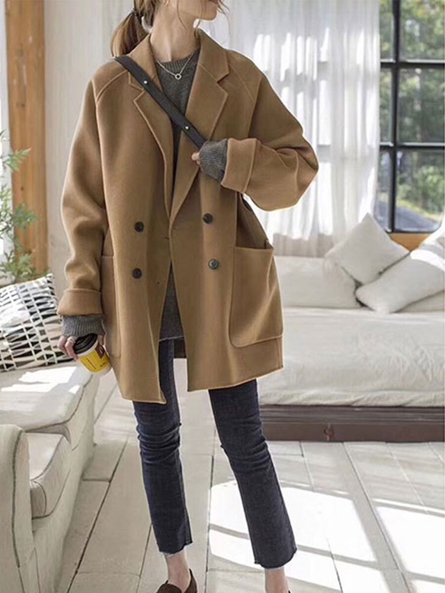 大きめポケット ウール チェスターコート レディース コート アウター 上着 チェスター 丈長 長袖 Vネック 襟付き ポケット 前開き かわいい 大人可愛い きれいめ シンプル カジュアル 上品 おしゃれ こなれ感 ルーズ 無地 春 秋 冬 ママ 通勤 学生 学校 通学 デート お出かけ 旅行 ショッピング カフェ 重ね着 韓国 暖かい 防寒 体型カバー 普段使い 着回し レイヤード M L XL 2XL 3XL 4XL 大きいサイズ ゆったり 黒 ブラック キャメル